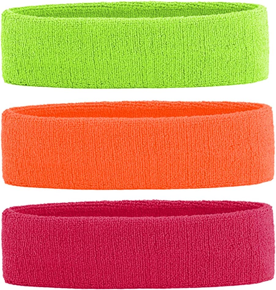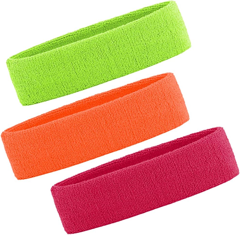 3 Pack Men & Women Sweatband Headband Terry Cloth Moisture Wicking for Sports Tennis Gym Work Out