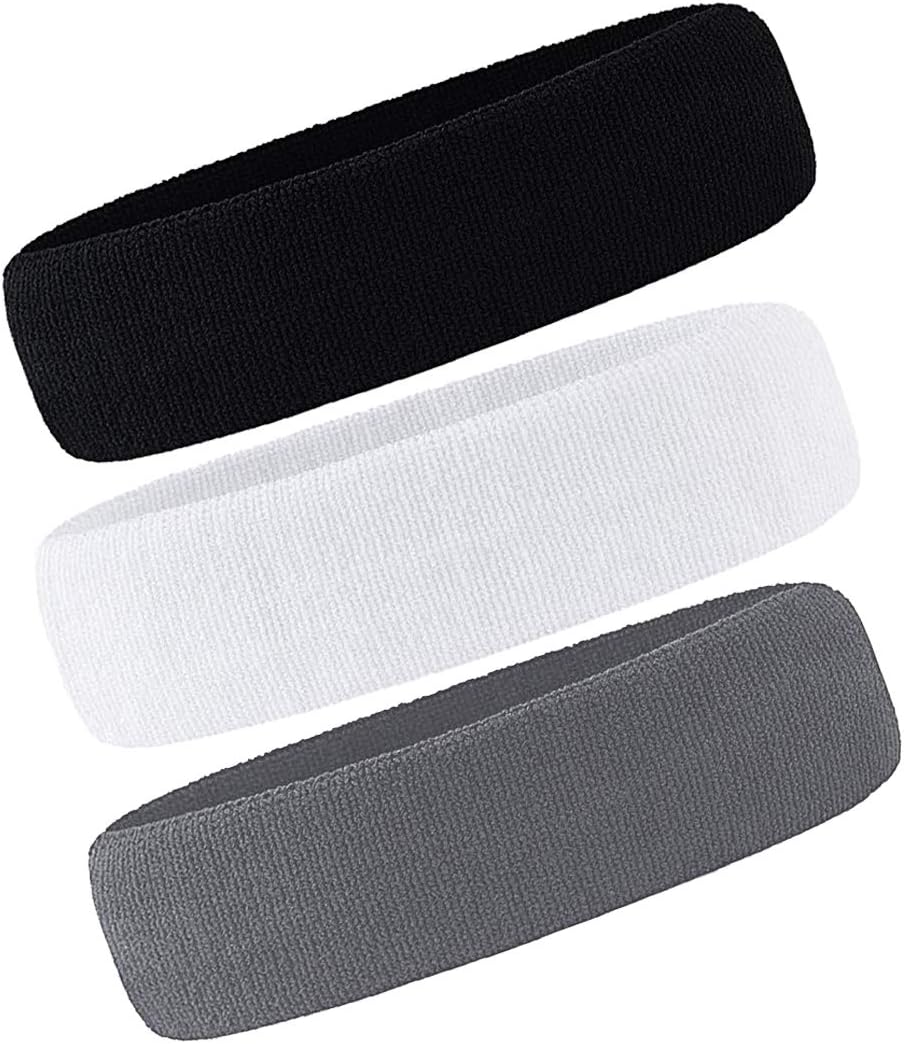 3 Pack Men & Women Sweatband Headband Terry Cloth Moisture Wicking for Sports Tennis Gym Work Out